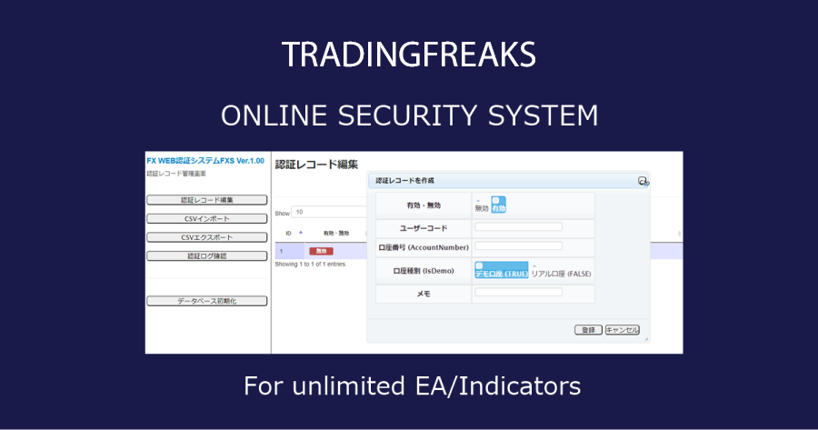 システムはDLLを採用し、メールアドレス、口座番号、口座種別による認証をすることでMT4のEA/インディケーターを不正利用から保護します。